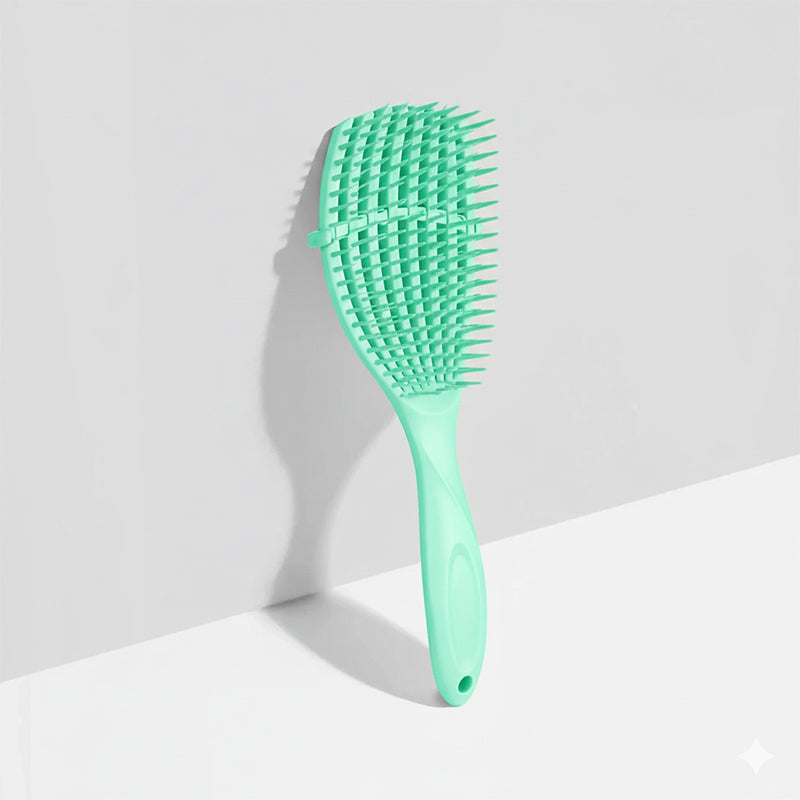 Detangle your hair effortlessly with this Detangling Hair Brush, designed to glide smoothly through both wet and dry hair. The flexible bristles gently loosen knots and tangles without pulling or breakage, making it ideal for daily use on all hair types. Perfect for use after showering or on dry hair, this brush helps reduce damage while leaving hair smooth, manageable, and pain-free.